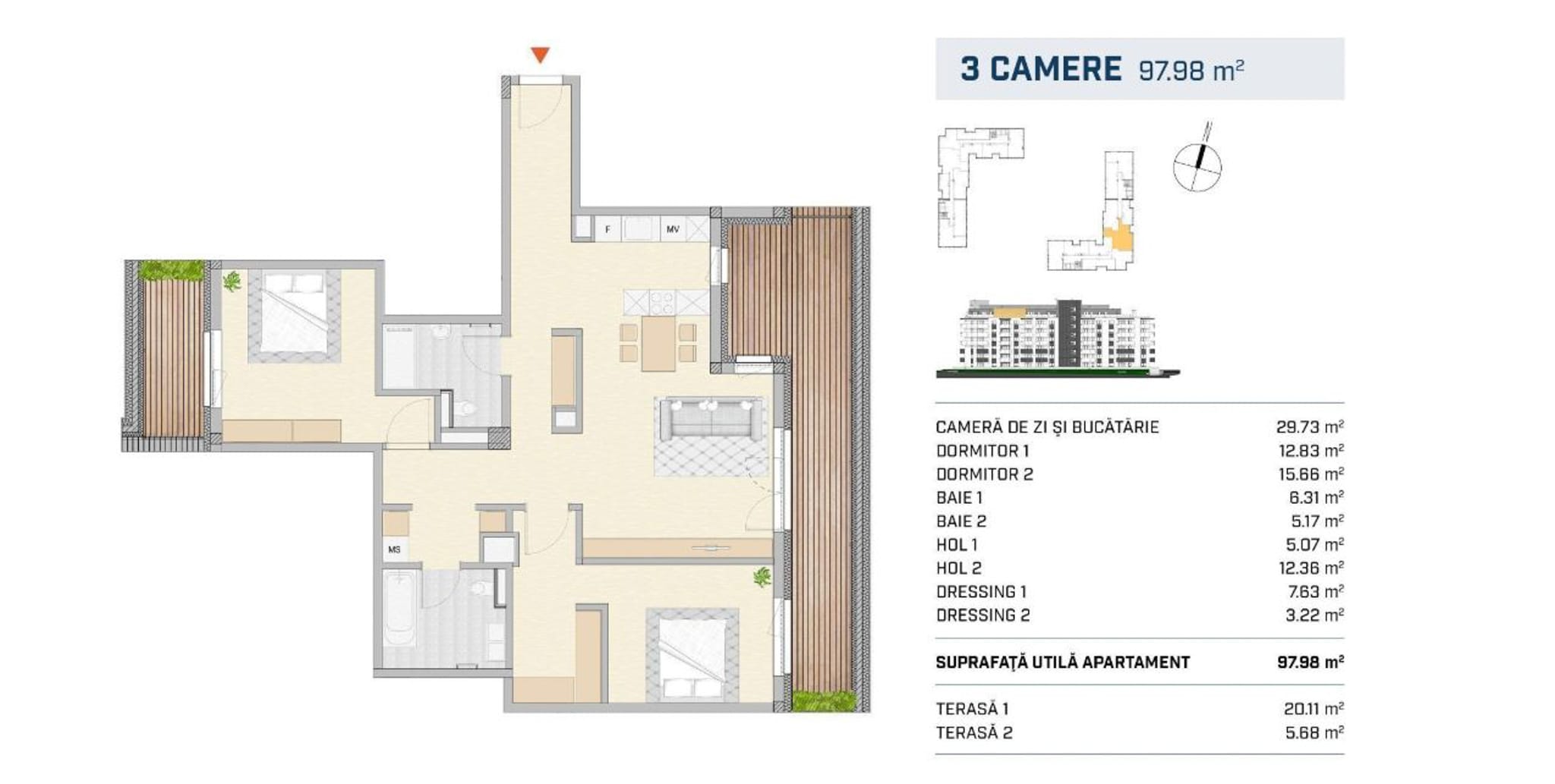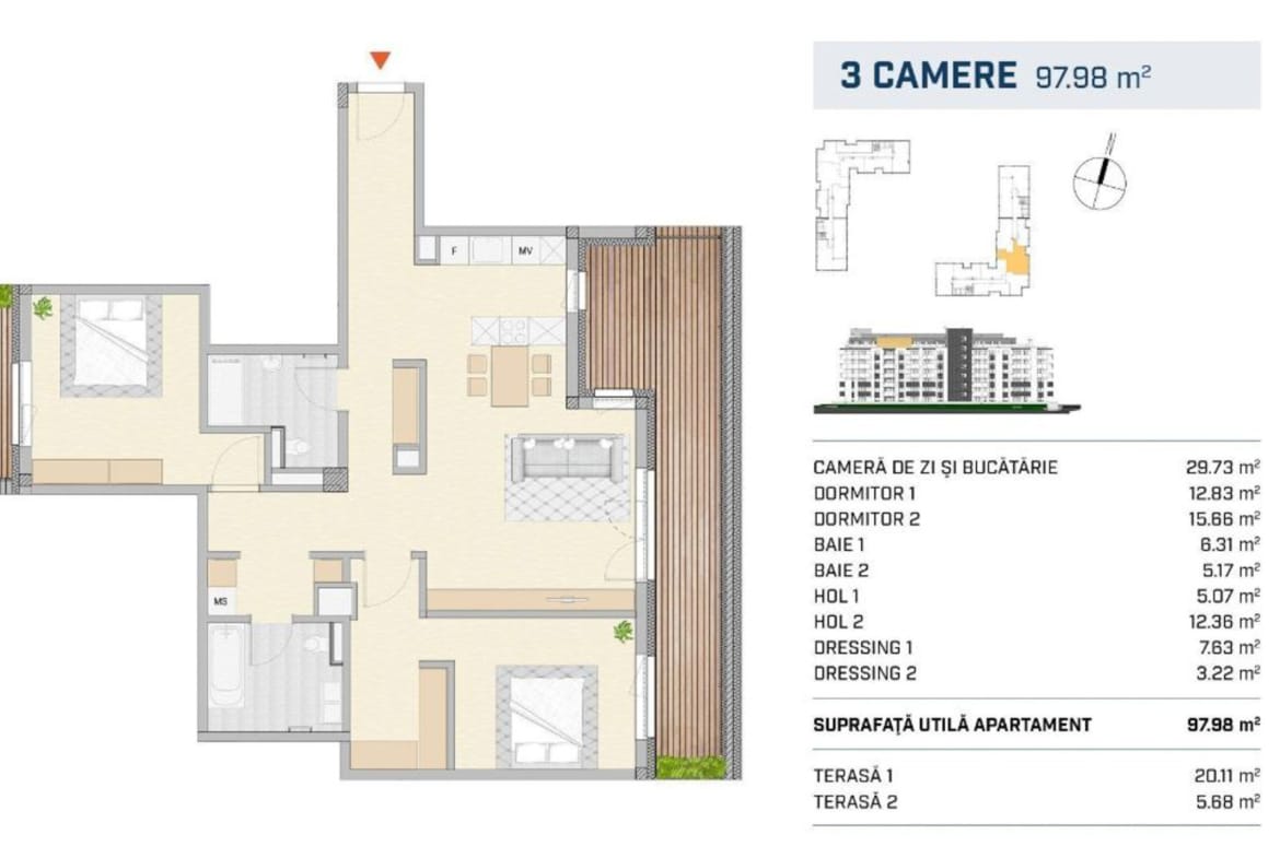 - Suprafata Utila: 97.98mp