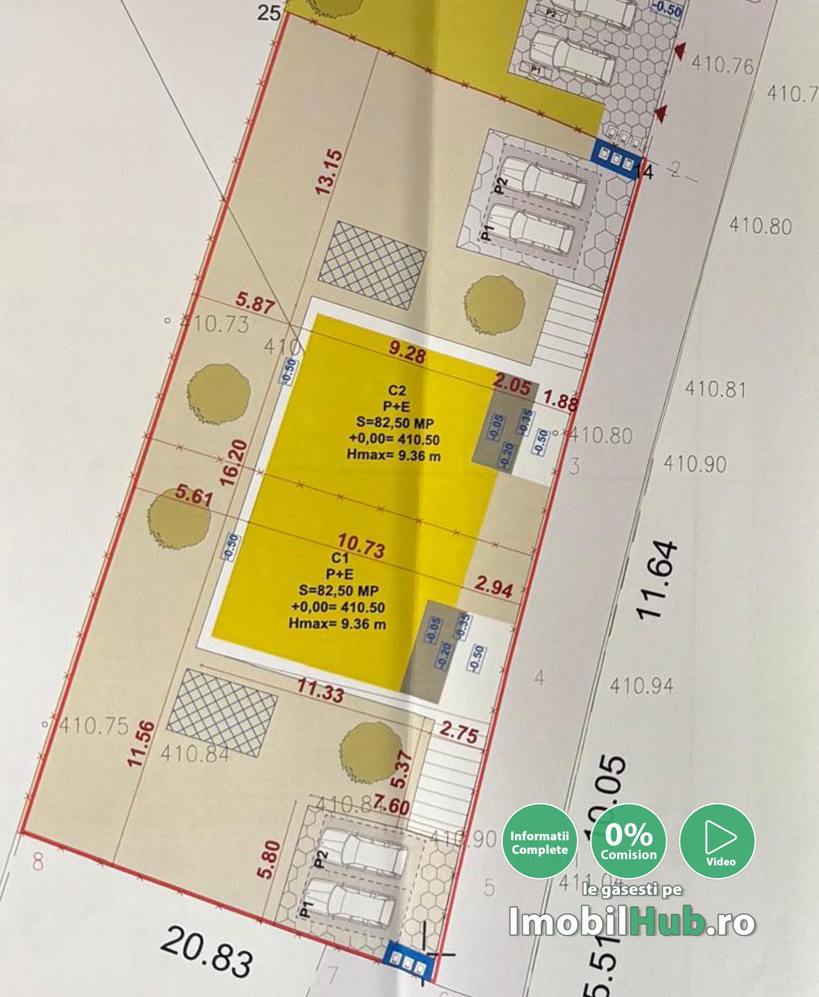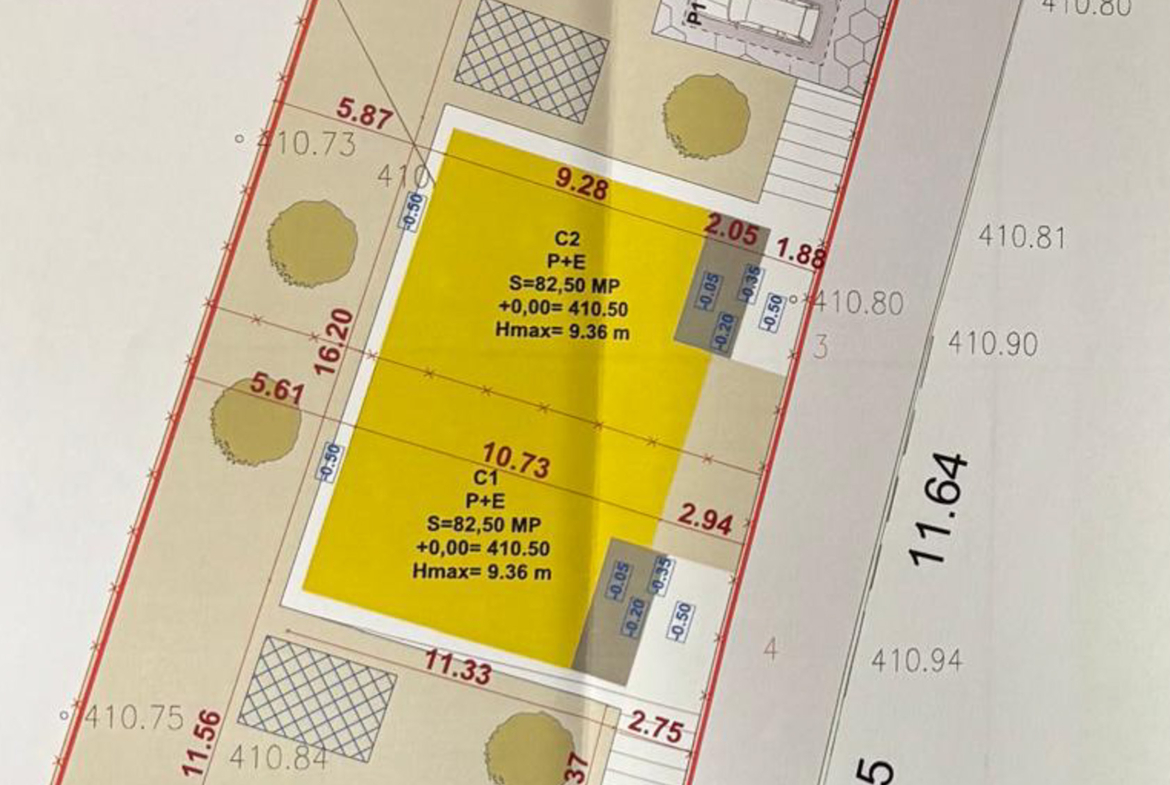 320 m² teren liber, cu dispunere optimă:2 locuri de parcare în față, o zona ideala pentru terasă, in partea din spate, cu ieșire din living, zonă laterală spațioasă, ideală pentru grădină, loc de joacă sau relaxare