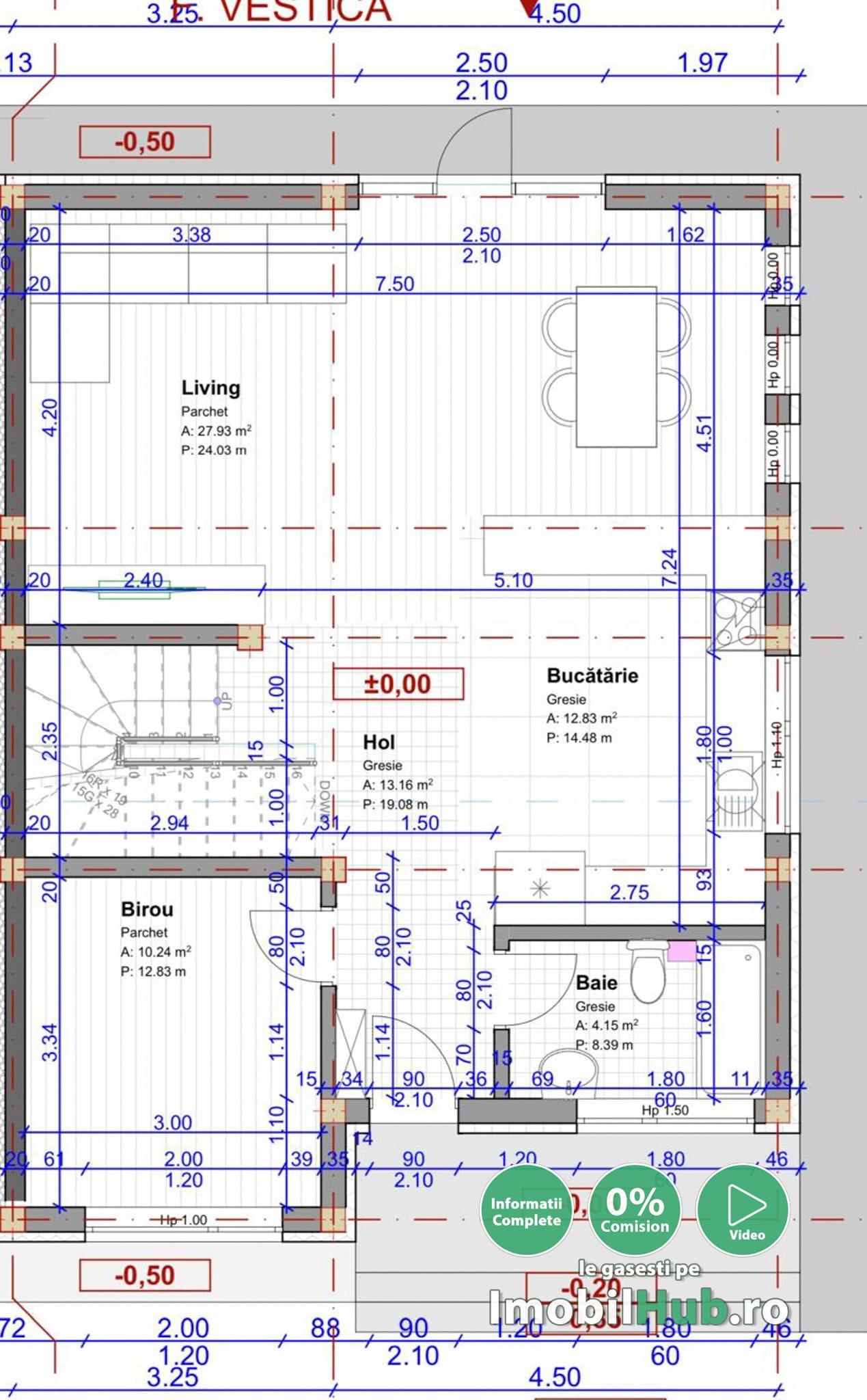 Spațiu de zi generos, ce permite compartimentări suplimentare (ex: separarea bucătăriei sau adăugarea unei camere)