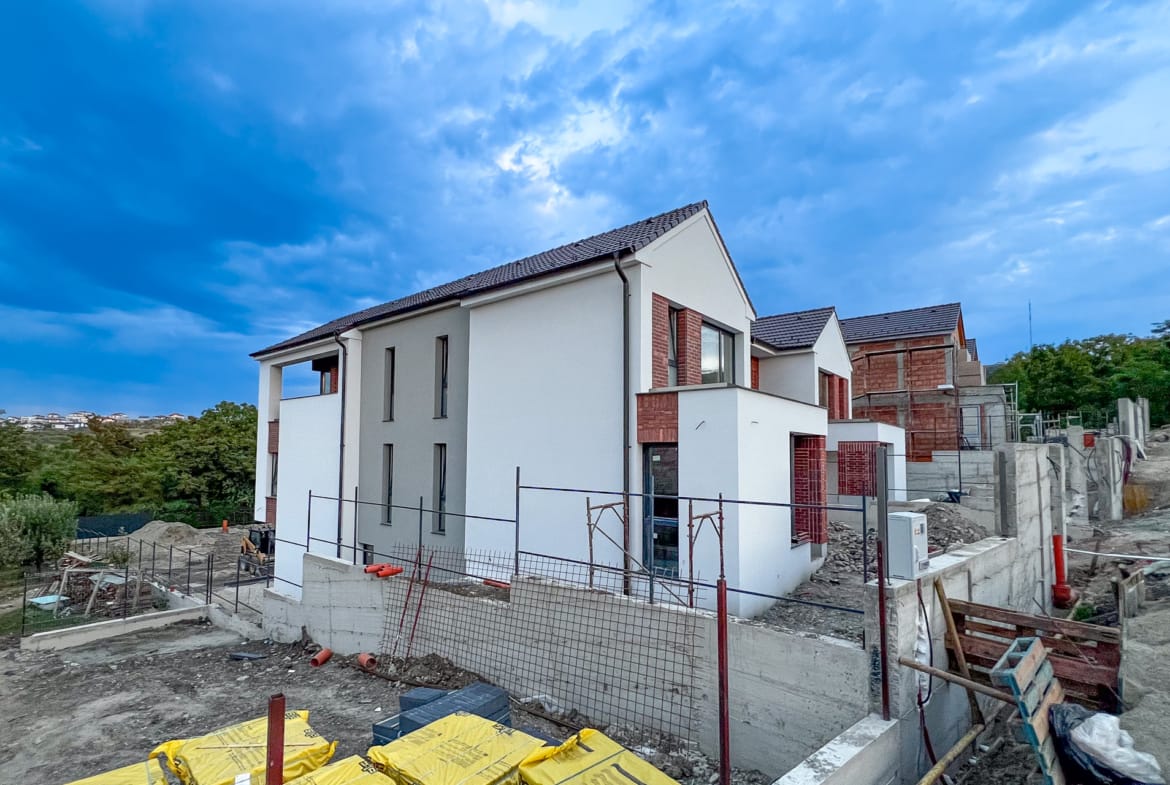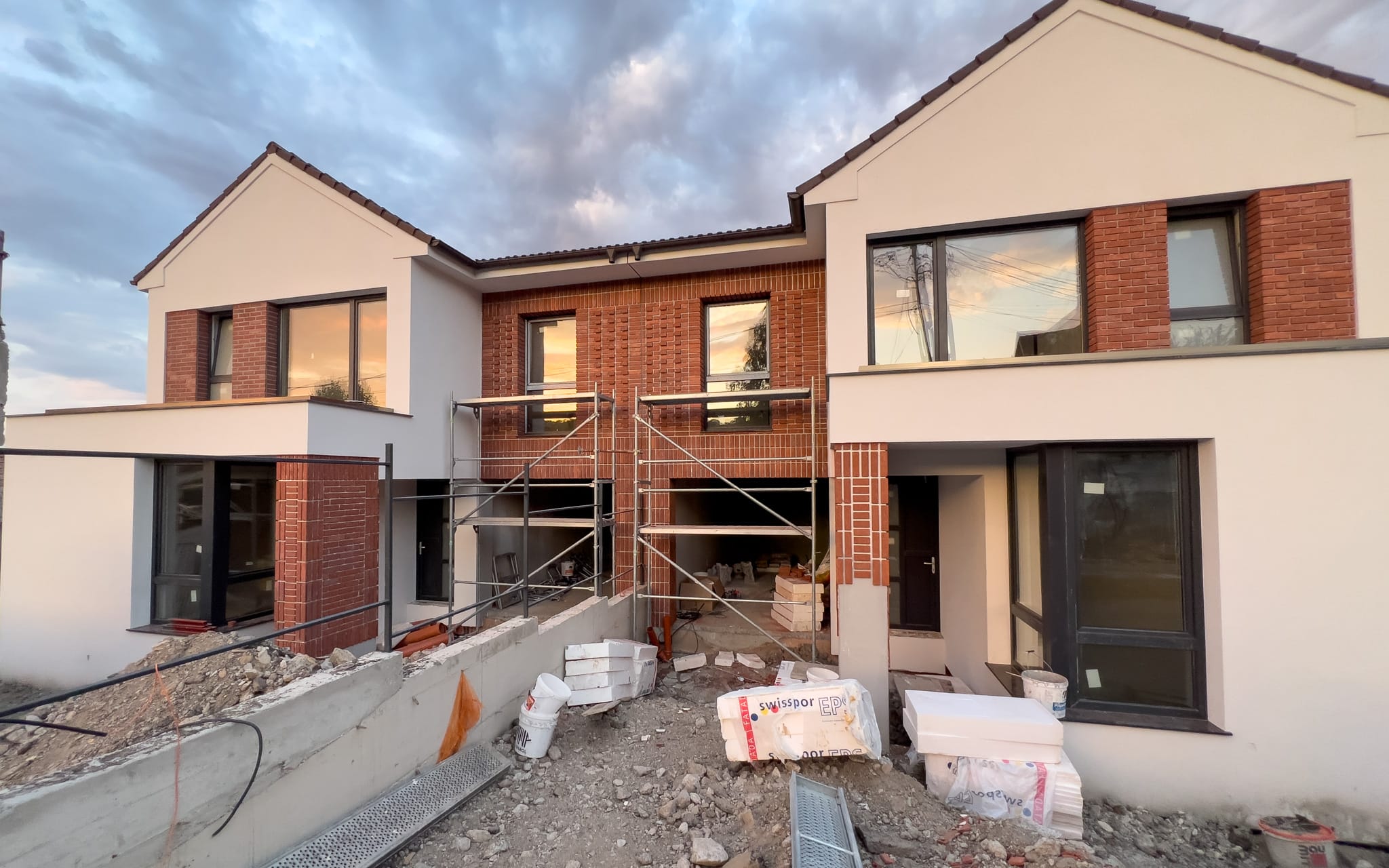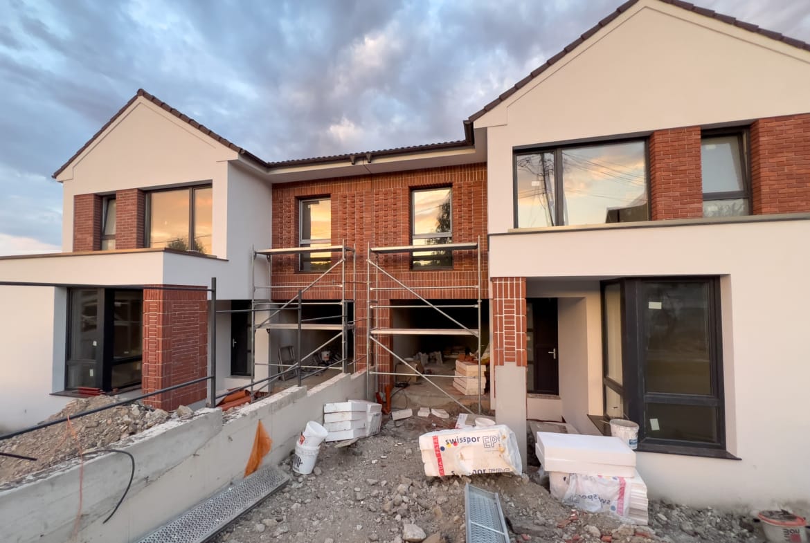 - Casa se vinde in stadiul de semifinisat, avand incalzire in pardoseala cu centrala pe gaz in condensare, ferestre si usi exterioare tripan, termoizolatie din polistiren expandat pe pereti (implicit si peretele comun este dublat si termoizolat intre cele 2 randuri de blocuri ceramice)