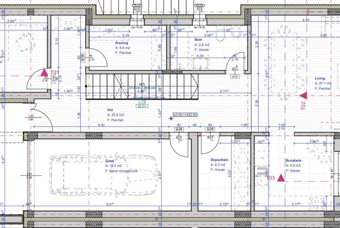 - Parter: living, bucatarie, baie de serviciu, birou si garaj auto.