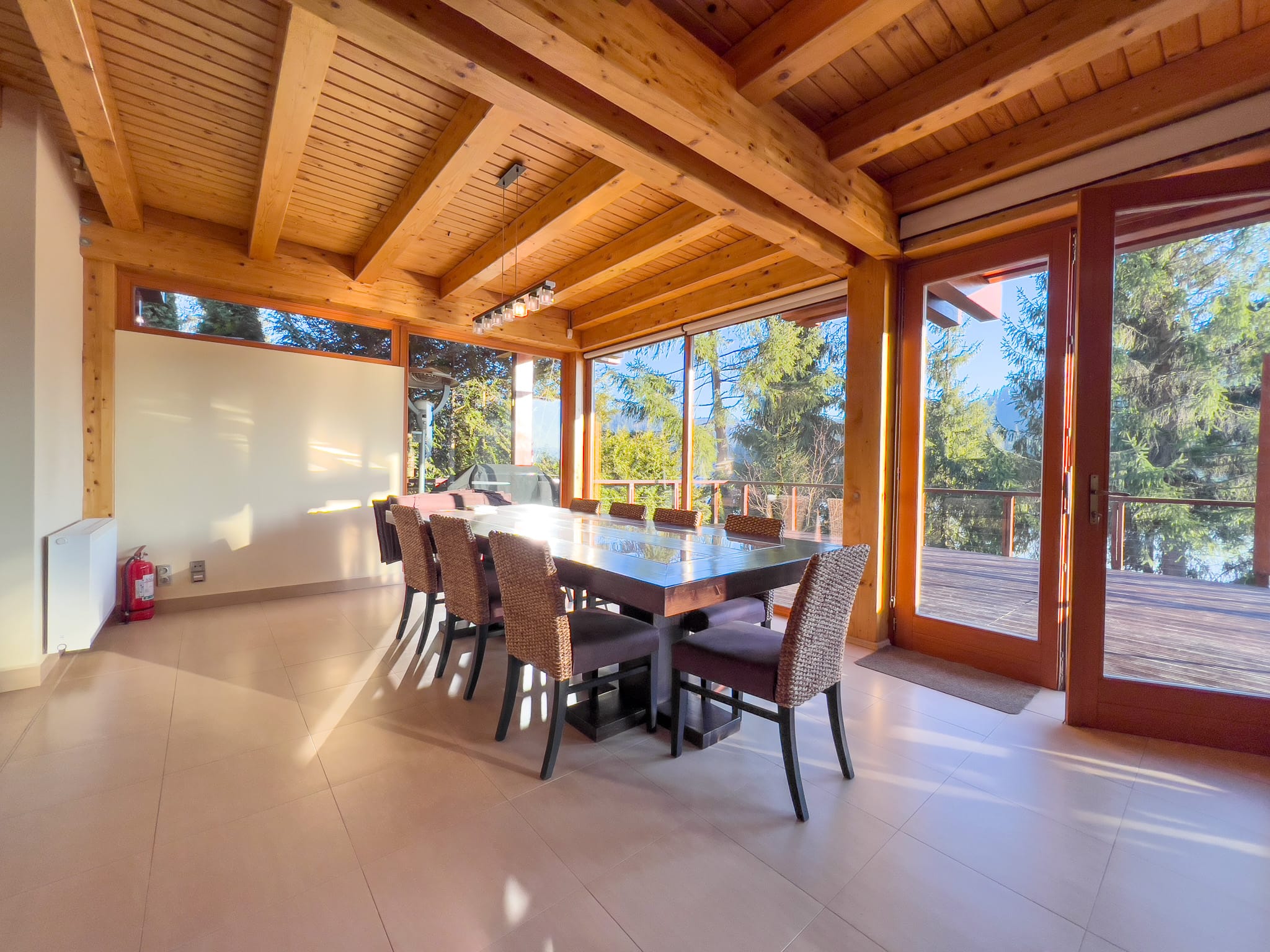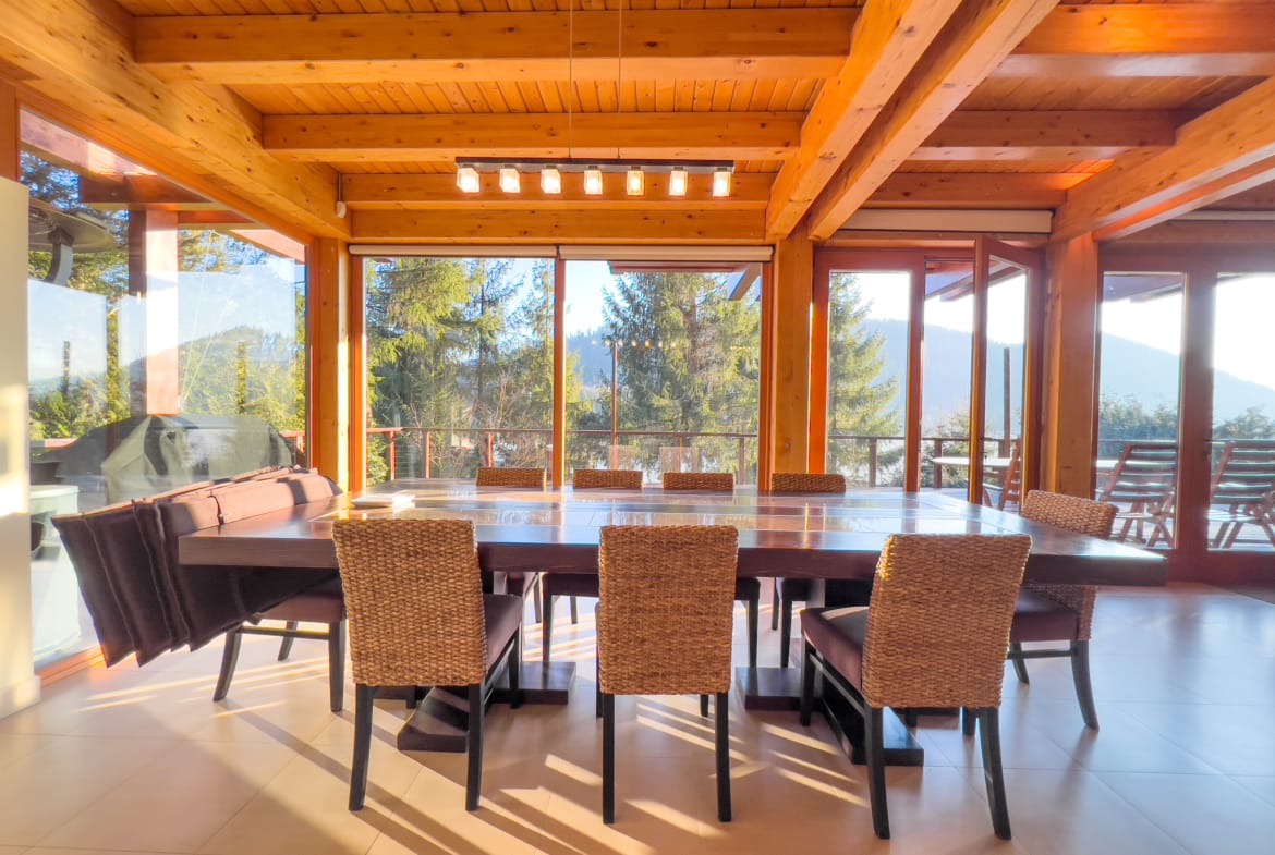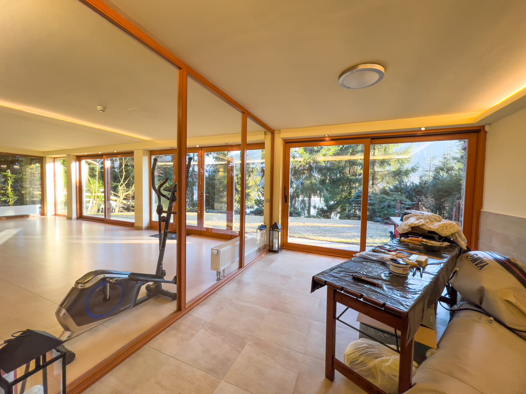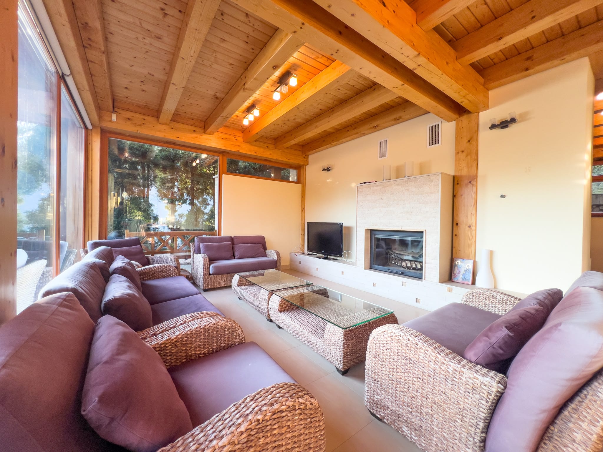 Structura este din sticlă și lemn stratificat de înaltă calitate (producător norvegian Glulam), asigurând izolație și rezistență superioare. Sistemul de încălzire este asigurat de o centrală termică pe lemne Viessmann, cu opțiune de backup electric (24 kW). La demisol și etaj sunt radiatoare, iar la parter există încălzire în pardoseală și șemineu cu ventilație.
