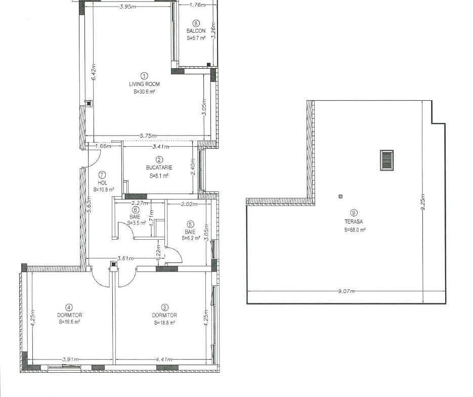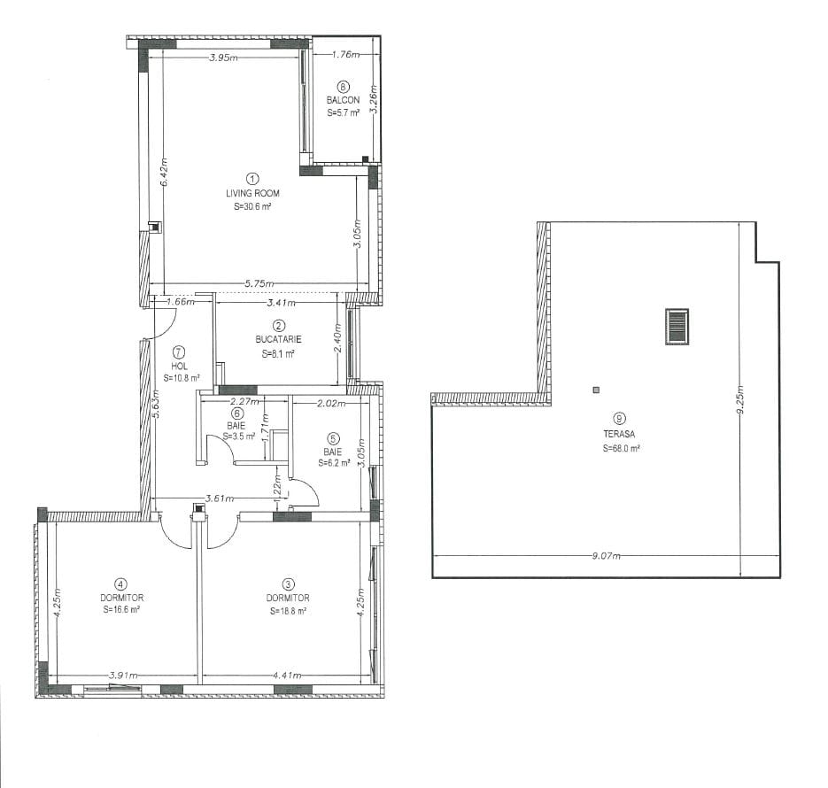 - Terase: Bucură-te de o terasă panoramică de tip rooftop de 68 m² și un balcon adiacent, ideale pentru momente de relaxare și socializare.